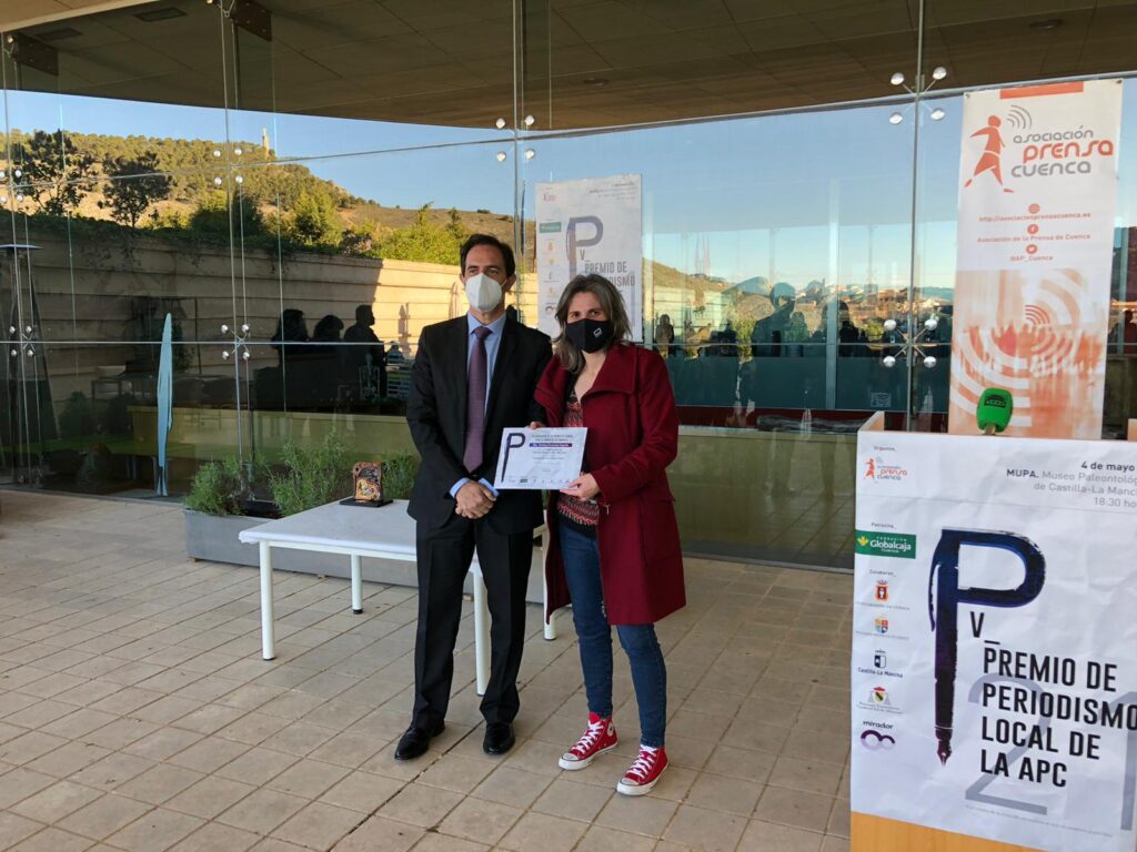 En la categoría de Periodista Novel, Ariadna Burgos, consiguió el ansiado trofeo en la que era ya su tercera nominación. Lo hizo por su trabajo televisivo, en Castilla-La Mancha Media, “Las personas sordas necesitan mascarillas transparentes homologadas”. La egresada de la Facultad de Comunicación agradeció la atención de la Asociación de Sordos de Cuenca y a sus compañeros. “Este premio me anima a seguir con esta profesión que tanto disfruto”. Gonzalo Bachiller, por su parte, fue galardonado con el segundo puesto en esta categoría por su reportaje en El Observador de Castilla-La Mancha titulado “El oro verde conquense”.